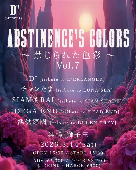 Ticket adv ¥2,000 + 1drink(¥600) / door ¥2,400+1drink(¥600)